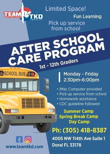 Our after-school care is exceptional! Our Taekwondo master picks up kids directly from school in a dedicated van to our Taekwondo studio where they can do homework and play. Plus, we have state-of-the-art Apple Mac computers for children to conveniently complete their computer assignments!